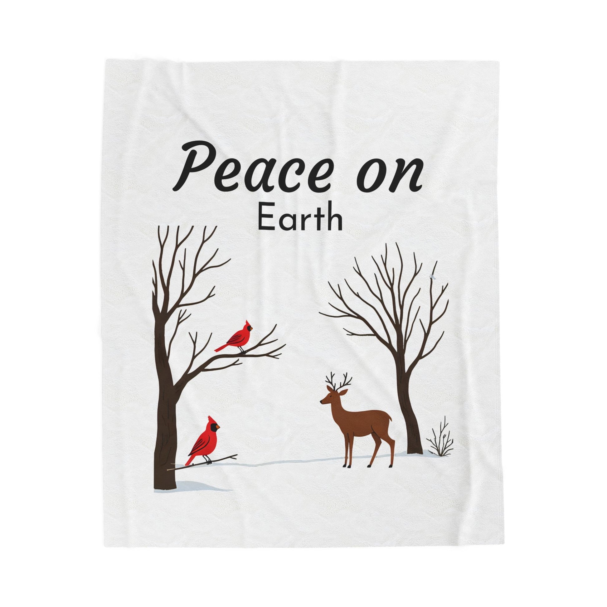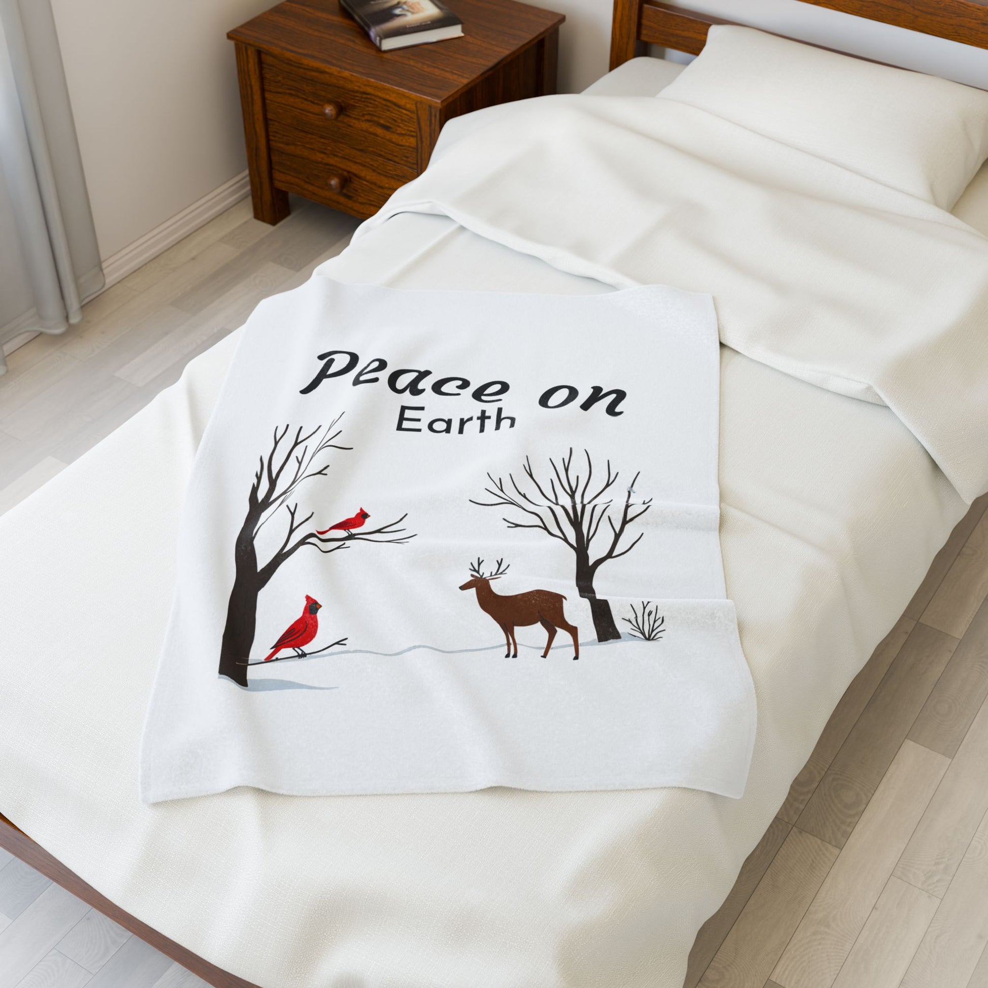 Cozy Holiday Velveteen Plush Blanket | Peace on Earth Design for Comfort, Gift for Christmas, Winter Decor, Home, Cozy Nights