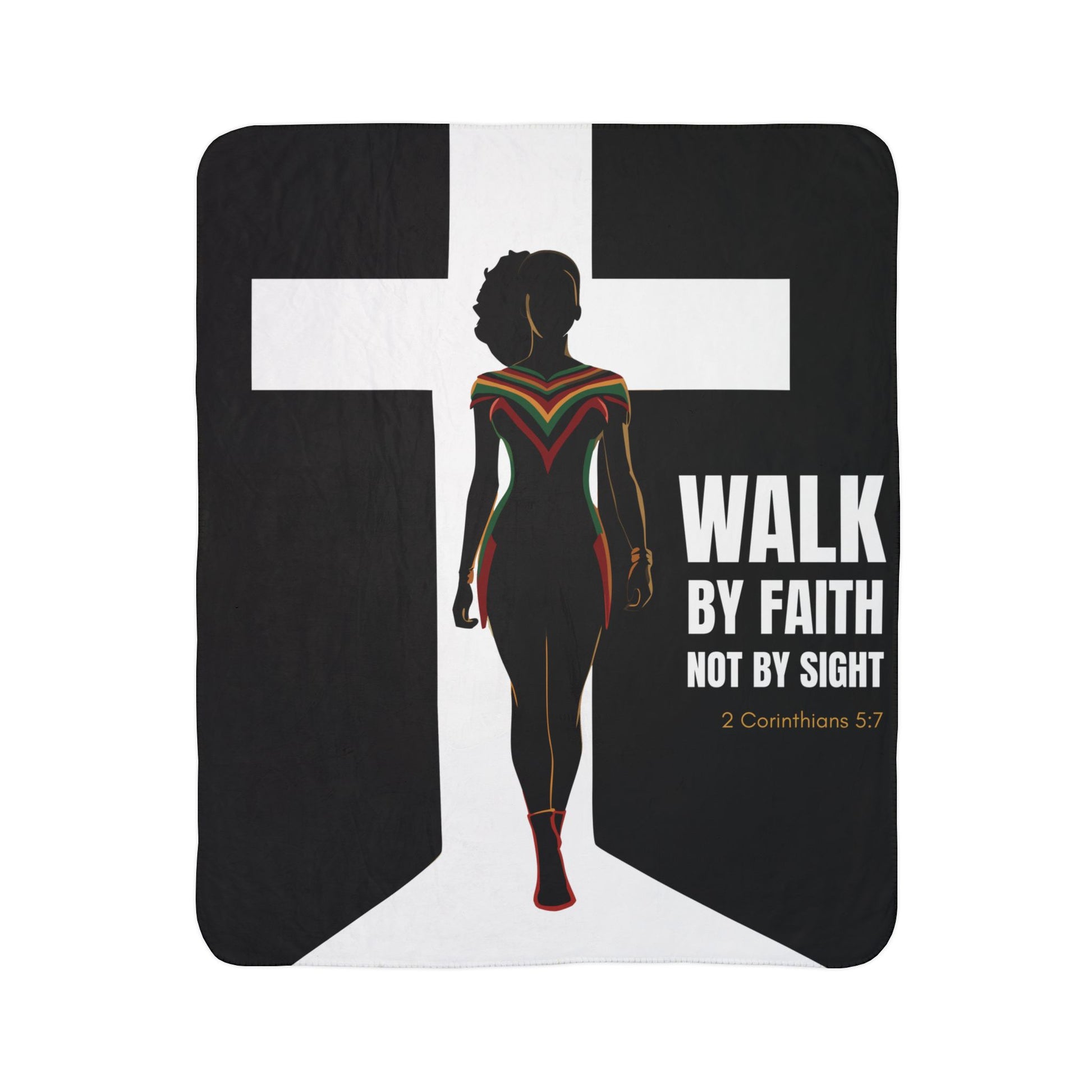 Faith Walk Sherpa Blanket — "Walk by Faith, Not by Sight" Christian Throw