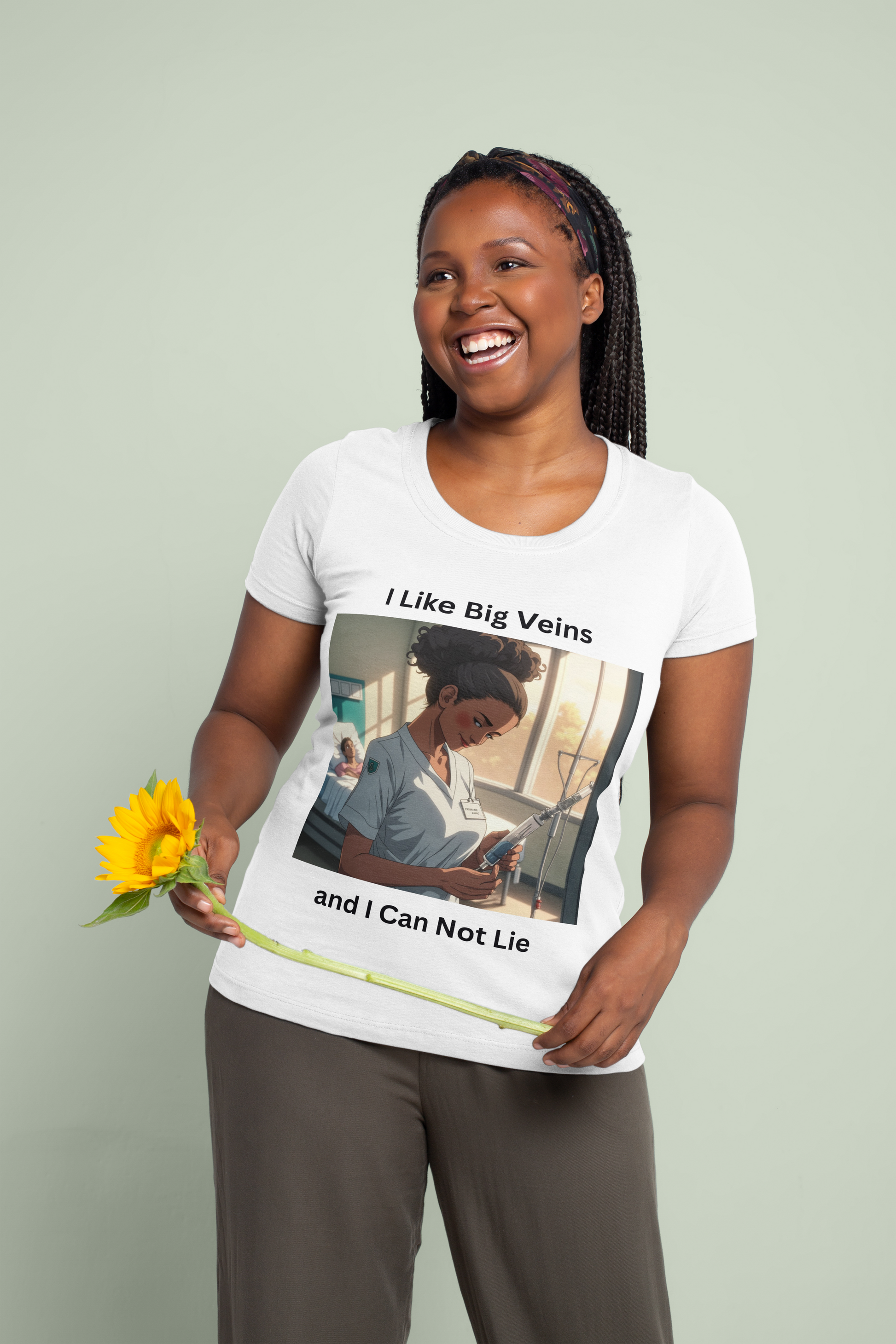 Featuring a confident nurse mid-prep and the bold line “I Like Big Veins and I Can Not Lie,” this shirt is perfect for IV queens, phlebotomy pros, PICC-line legends, and anyone who’s ever whispered, “Please don’t roll… please don’t roll.”